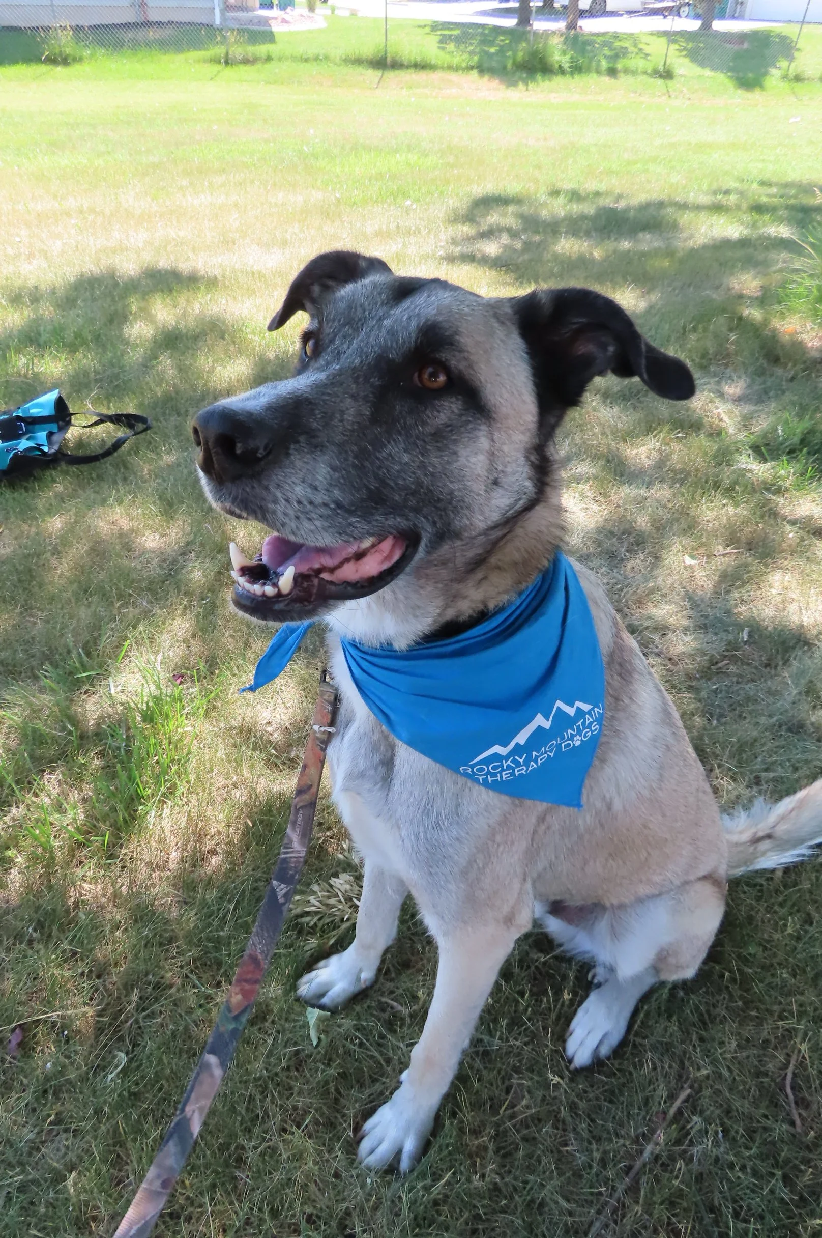she loves to hike, trail run, chase us on out mountain bikes, play frisbee, swim for tennis balls, chew sticks, go for car rides & snooze. she goes to work with her person as a trail guide dog. she is very loving & makes the clients feel comfortable and at ease.