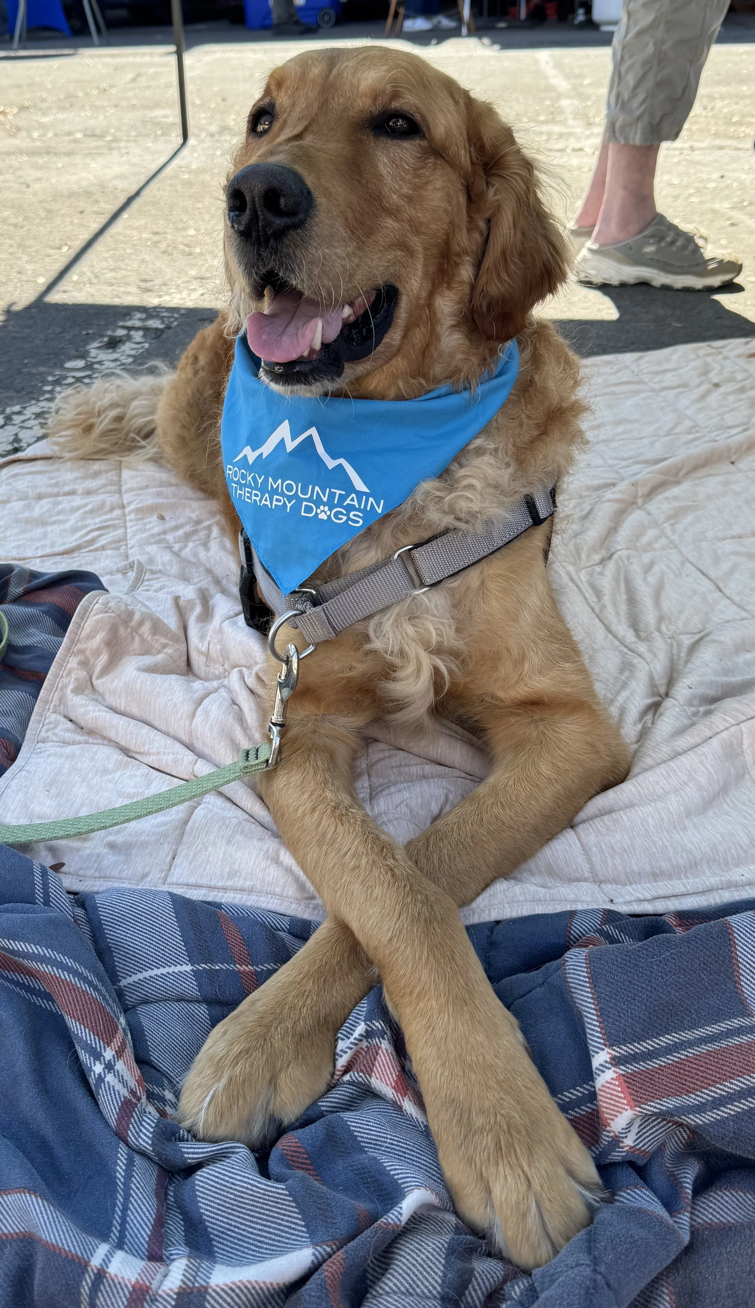Marlie is a 9 year old Goldendoodle from Pleasant View, Utah, who’s starting an exciting new chapter as part of Rocky Mountain Therapy Dogs. The youngest of her “pack” with four human siblings, Marlie has been bringing joy, laughter, and a little bit of mischief to her family her whole life.